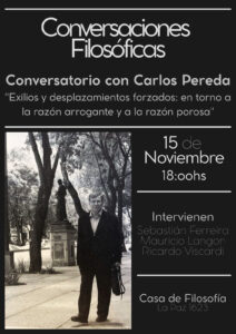 15 de noviembre 18:00hs Intervienen Sebastián Ferreira Mauricio Langon Ricardo Viscardi La paz 1623 Casa de Filosofía